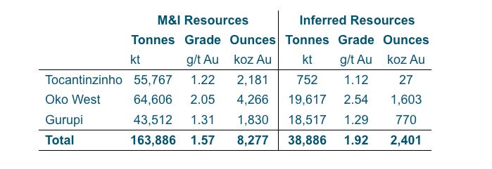 Across the three projects, GMIN sits on 8.3 M ounces in the M&I category and 2.4M ounces Inferred as shown in their latest consolidated MRMR estimate: